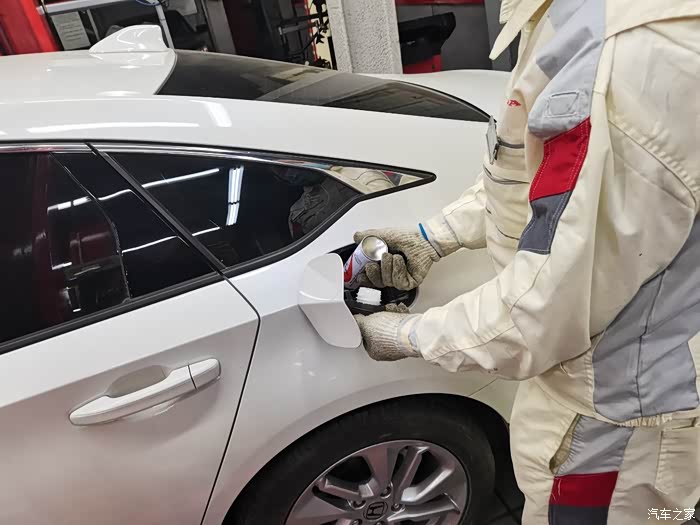 帅哥说我满箱油,把发动机清洁剂直接给我用上了,这个东西主要是清理喷油嘴积碳的,直喷发动机就有这个特色。