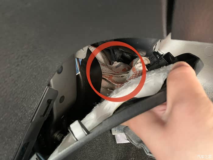 5.掰开挡板,给红圈位置垫一个毛巾,这个位置是气囊电脑,防止清洗液流入,我清洗完后毛巾上确实有一点水,但是很少,就一点点。
