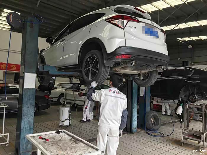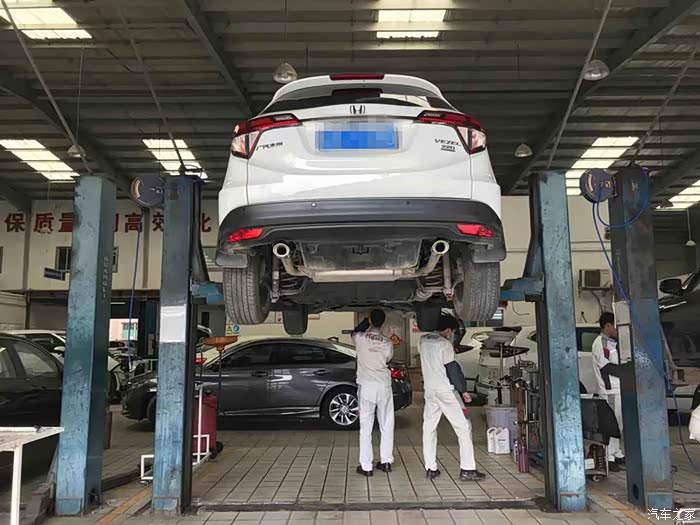 保养过程中,师傅还是比外面的汽修店要认真的,轮胎什么的都会给你拆下来看,刹车片什么的都给你拆下来,清除里面的灰尘、铁销之类的,刹车盘什么的也会给你喷点润滑油,底盘也会给你来个细致检查,可能这就是为什么4s店保养价格比外面贵的原因吧。不多说了,上大保健美图吧。