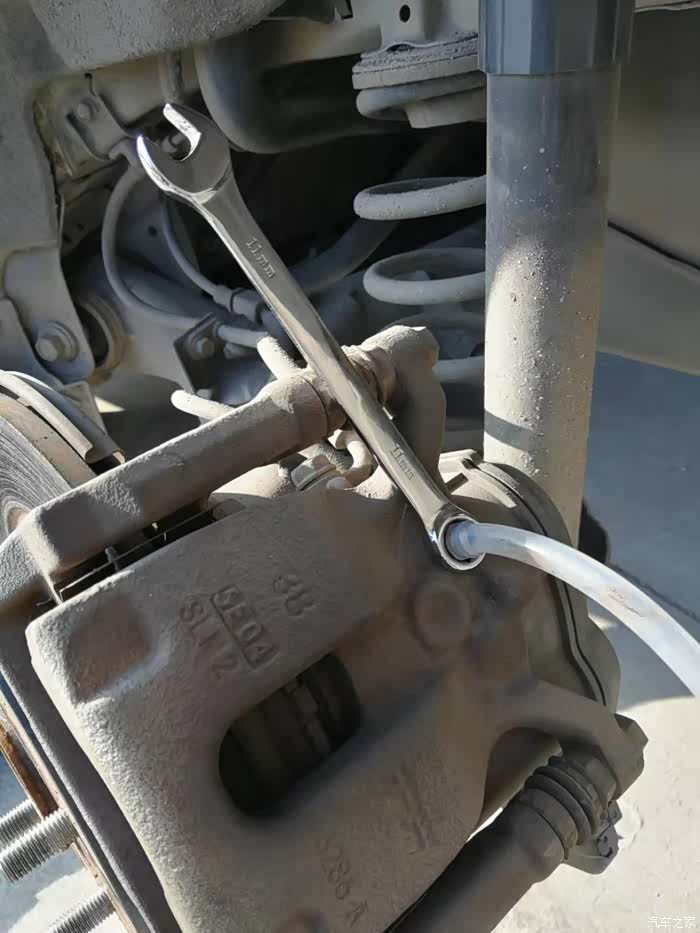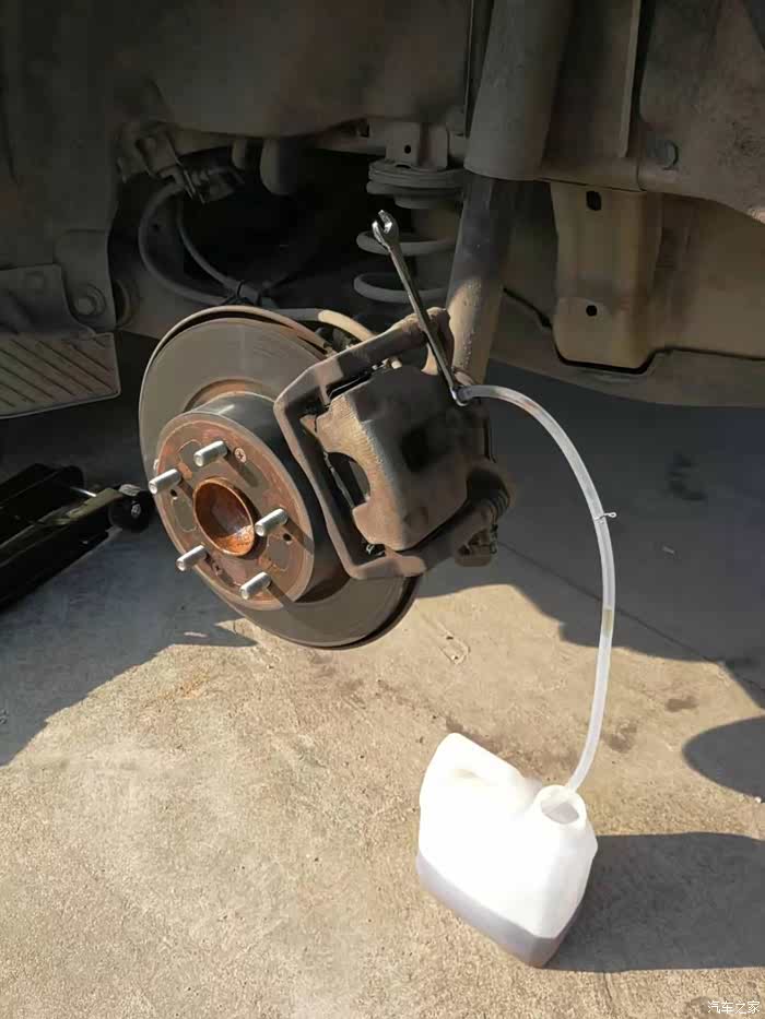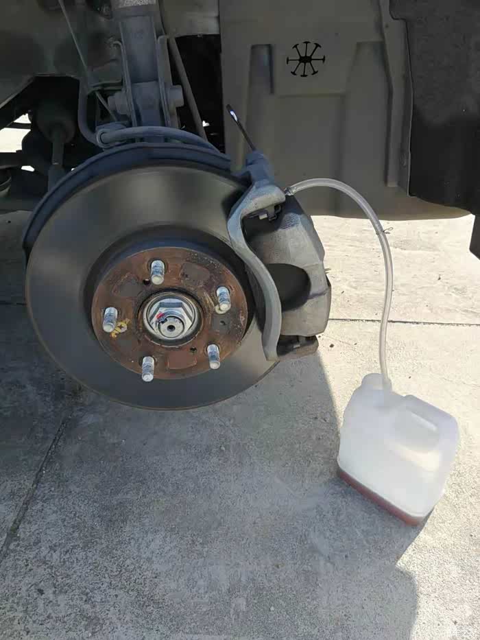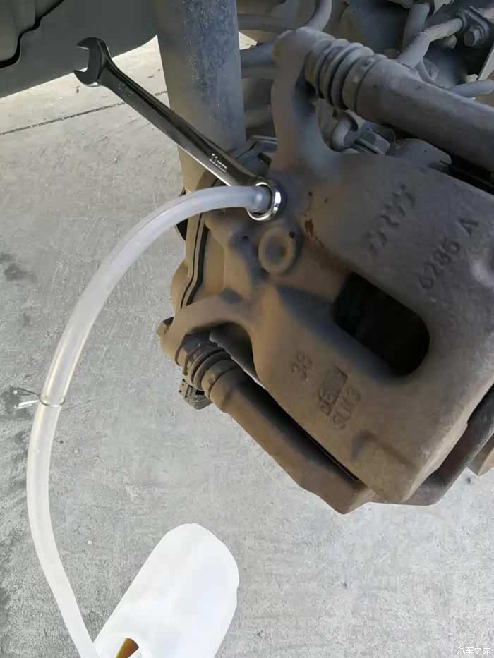 用橡胶管连接到放油螺丝上面,橡胶管末端用塑料桶盛接废油。前分泵放油螺丝是10MM,紧固力矩是8.5牛米