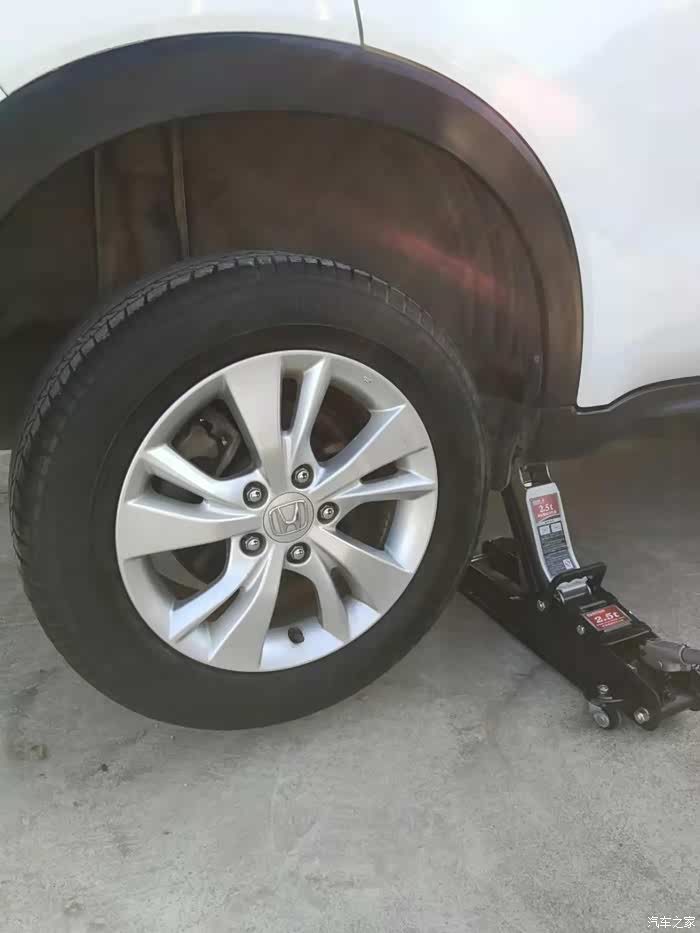 用千斤顶举升需要放气侧的轮胎,然后拆除车轮这样放气会比较方便