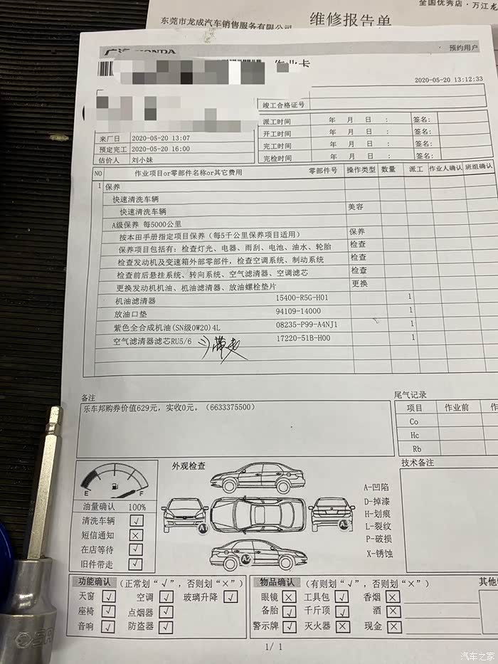 前提约好时间准备过去开干,常规检查4s贵还是有好处的。窗道润滑,胶条润滑,轮胎厚度检查,下列也有图一一列表。工时200各项优惠搞下来五百开头。