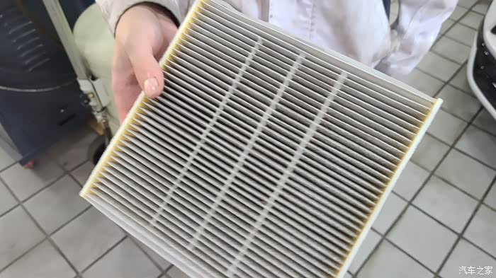 这次保养的话就不像首保和磨合去检查那样简单了。我自己稍微看了一下,他帮我拆装了一下空气滤芯空调滤清,我自己也稍微看了一下,并不是特别的脏,他也就帮我稍微吹了一下。