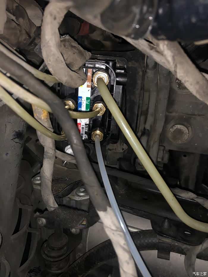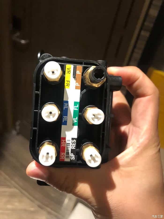 悬挂分配阀内部的压力传感器报故障,并且车子停了一天会明显全部下榻,所以换掉了分配阀