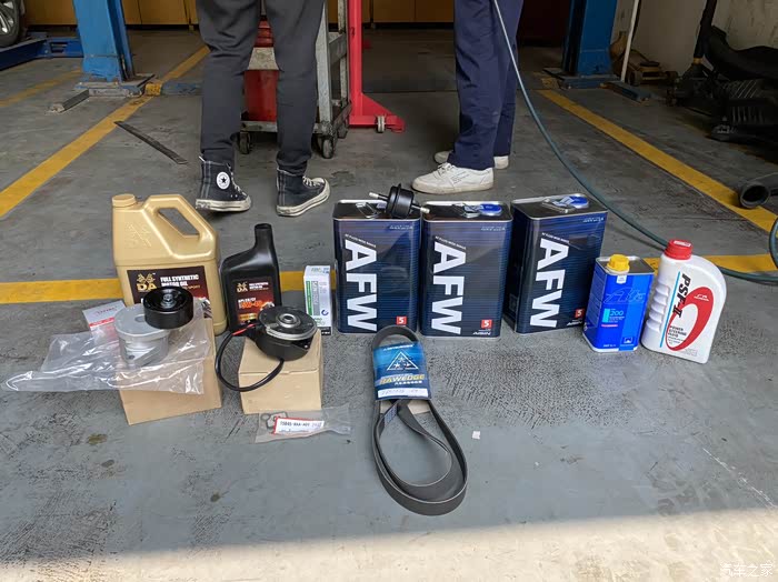 开始大整备,换油水,皮带,张紧轮,风扇马达,配件之一