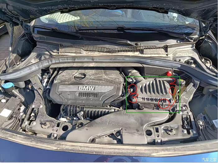 图中标示的绿色部分,就是空气滤芯所在位置了。。