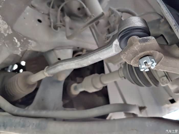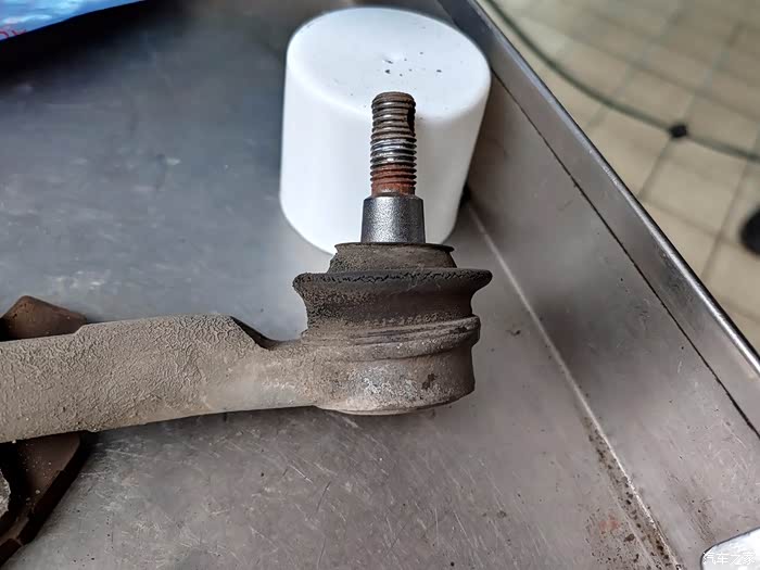 这是右侧的旧球头拉杆。可以看到已经破了的胶套。