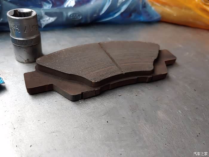 换下来的菲罗多刹车片,还有一半的样子。但是感觉菲罗多比较费刹车盘。我上次换刹车片也有作业,那时候还在北京。在机场路边修车店换的,