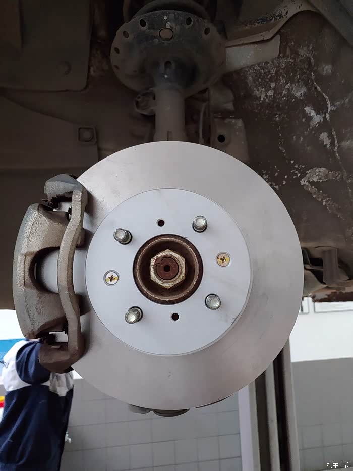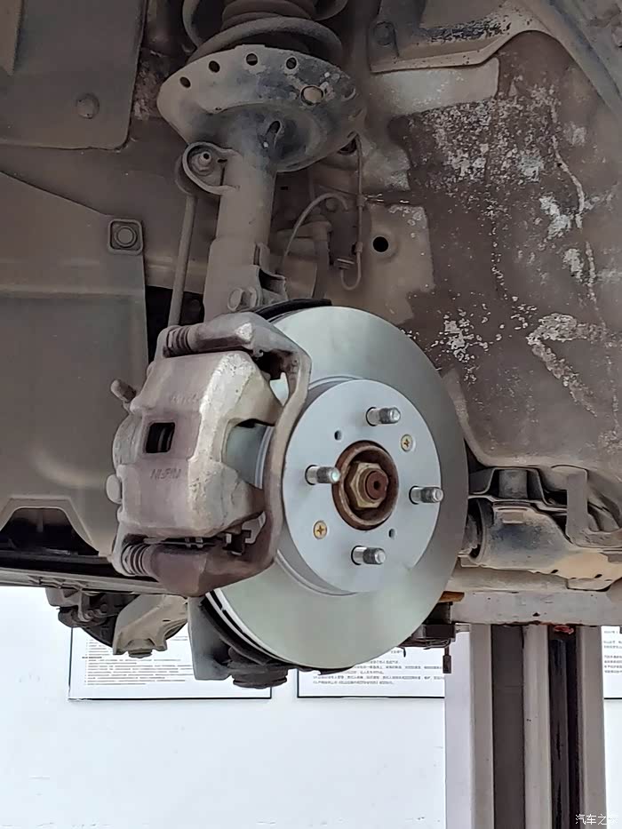 开车回来。看看新盘。 新刹车盘和片需要一定的磨合距离,新盘上去的时候,刹车距离没有以前的短。因为摩擦力还没达到最大值。