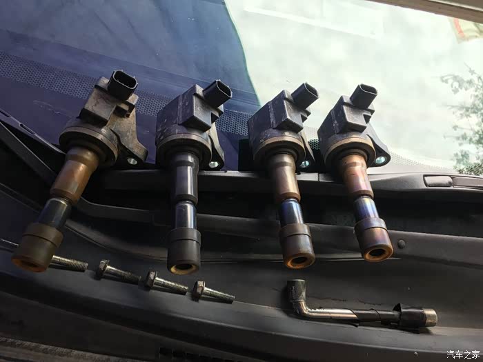 一个个点火线圈插入,然后用手先扭上固定螺丝。