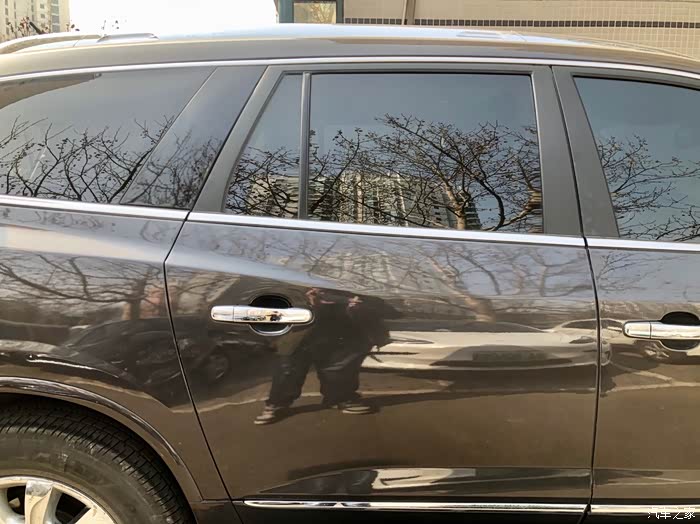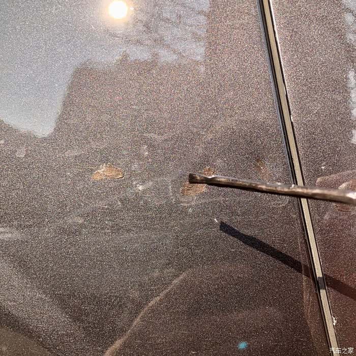 在涂之前,右后门门把手下面一排灰色的坑,现在这么看不咋明显了。
