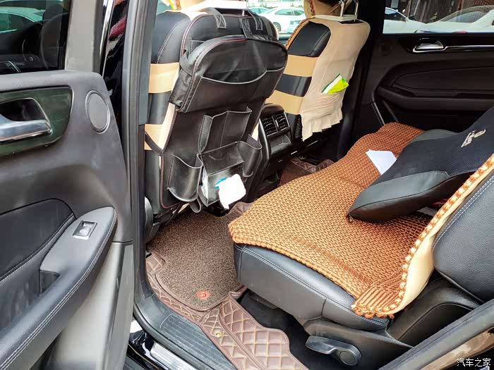 后排,为了家用方便,还是弄了一个座椅置物袋,有点丑,但是很实用。