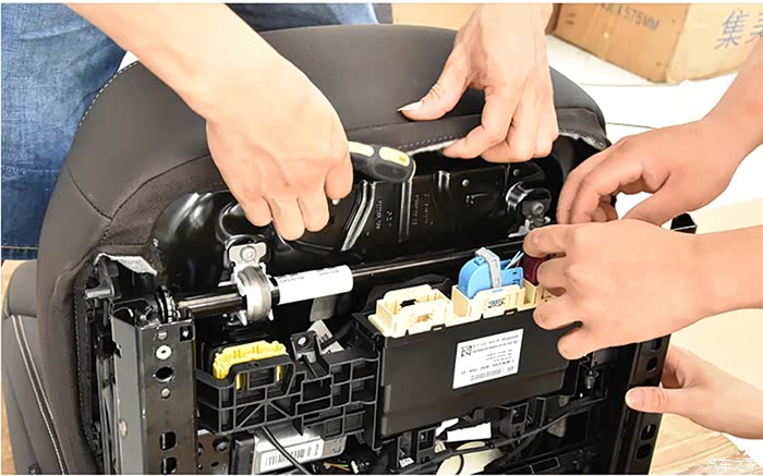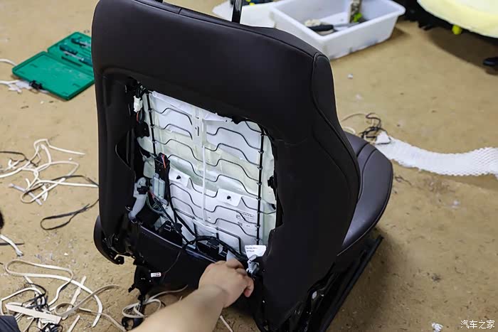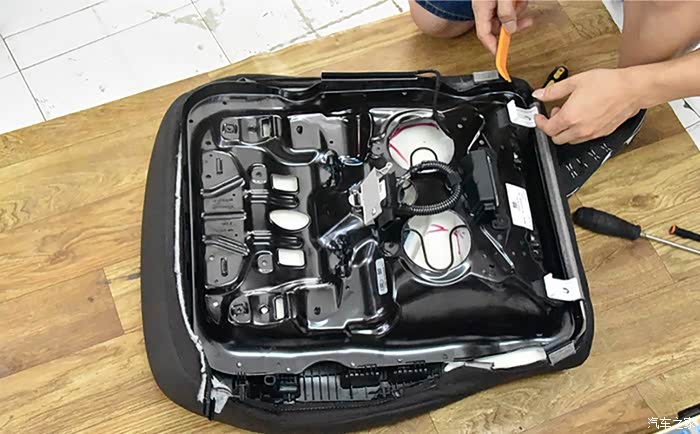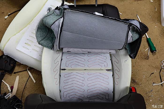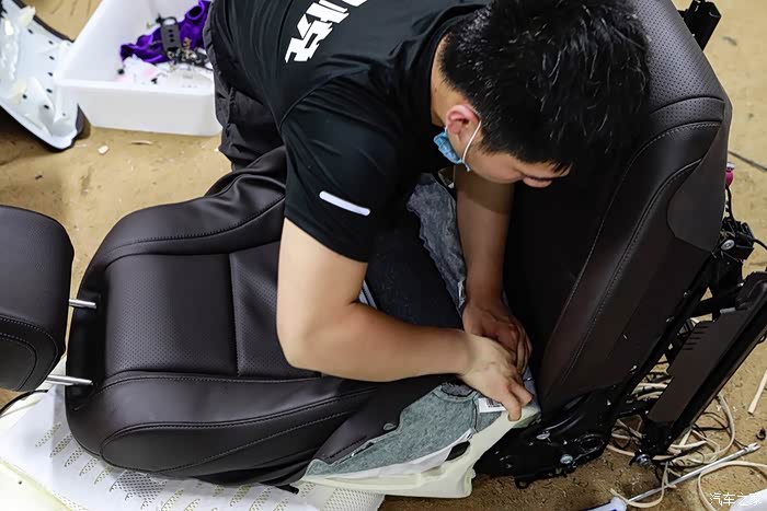 原车座椅已经是拆下来,原车座椅表面皮有透气孔的, 但是就没有座椅通风,需要自己选配或者后期加装。