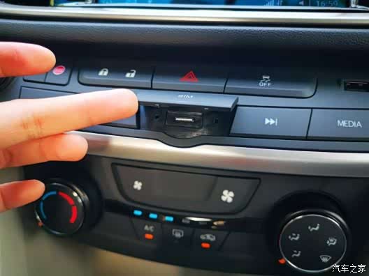 保留了常用的按键操作,比如说音量旋钮,控制音量的大小和关闭,切换歌曲的按键,以及全部车门锁的开关按键,再往下就是空调的控制按键了,说实话手感还算可以