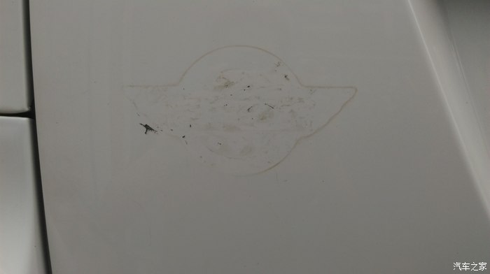 (得仔细看,拍照出来的效果不是很明显。但是,白色车身很容易脏,且时间久了容易沉积黑色污渍,非一般洗车能清洗干净的。楼主是用的“全能水”,效果非常好。)