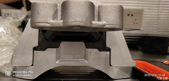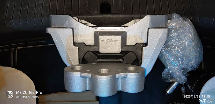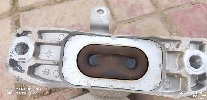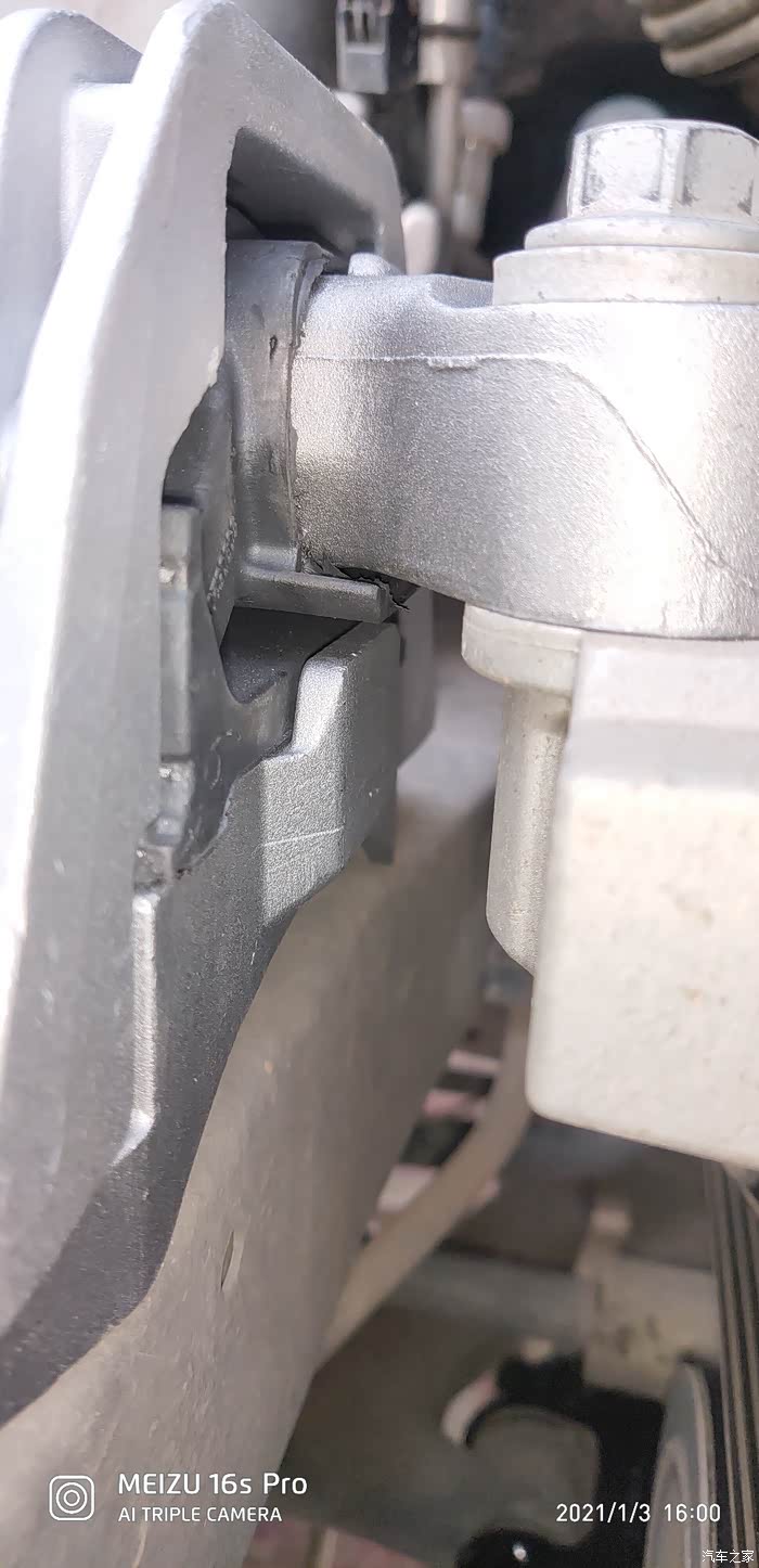 原车右侧机脚垫,支撑与座已经没有间隙。