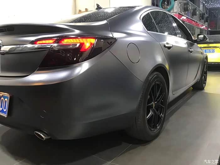 颜色方面没犹豫,贴了个电光深邃灰,车顶和后视镜贴黑。然后灯也贴了熏黑膜。接下来就是轮毂