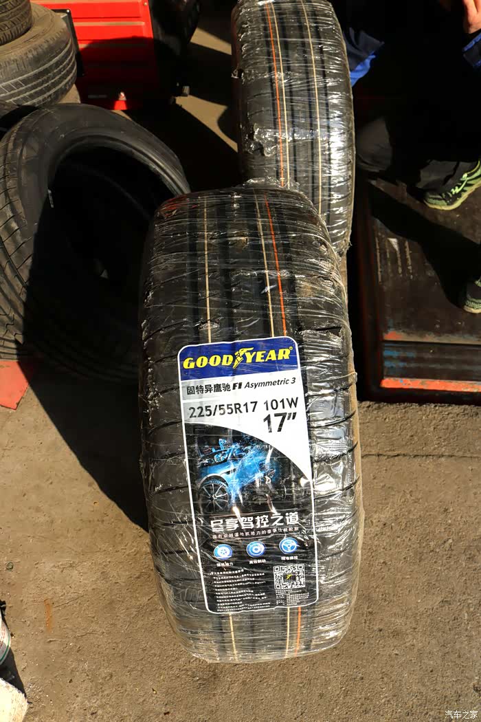 固特异轮胎特别的地方是分正反面, 内外不能装反, 一定要注意, 这个师傅都是知道的