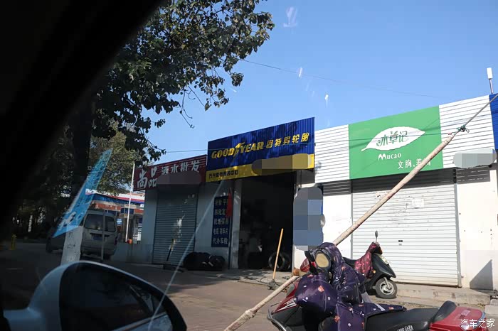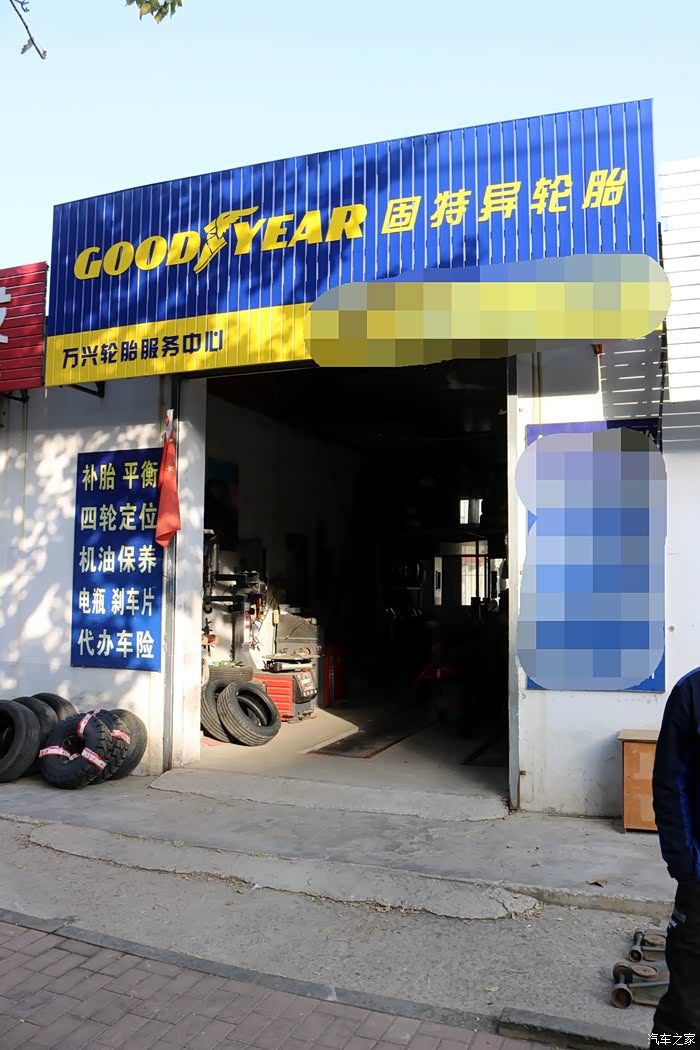 接到到货通知后, 赶紧把事情安排妥当, 约了固特异大师傅, 到店安装, 固特异的门头标志醒目得很, 非常好找, 嘿嘿