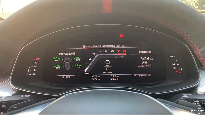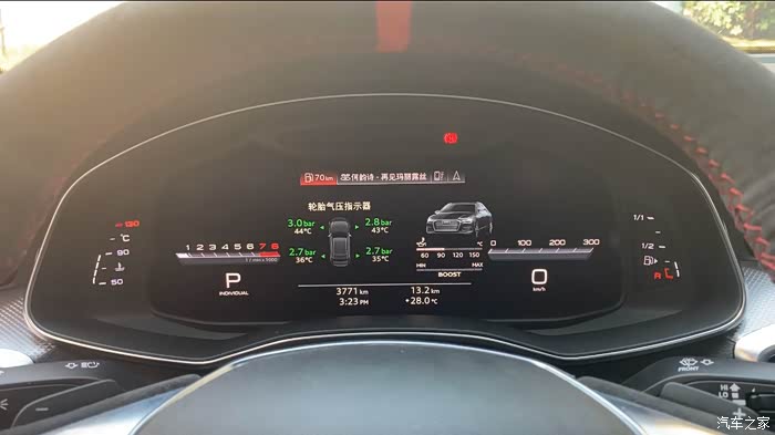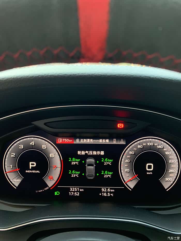 二代胎压,实时监测气压和轮胎温度,还是挺实用的,这个是没换运动仪表之前。