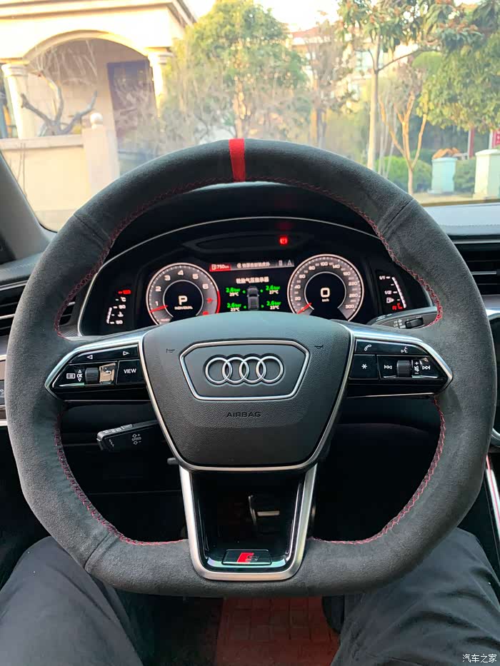 方向盘换了s底座,包了alcantara翻毛皮+红线+红色回正标~手感可以的