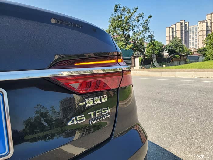 后45度看过去,真的很好看,而且新一代奥迪的设计理念是双腰线,仔细一看这中设计语言的确显得更加运动了。