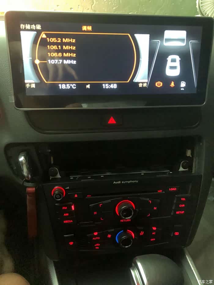方向盘多功能按键控制正常。右边音量调整,左边切歌。新车机的音源是通过AUX发出,所以原车系统需要选择好音源为AUX,也可以设置为自动。