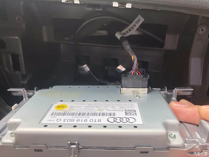 4颗螺丝拆掉就可以拔出多媒体CD控制面板了。注意后面有线束连接。