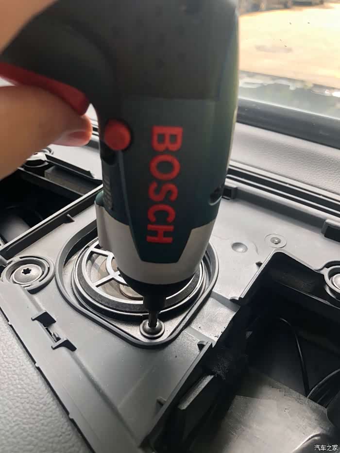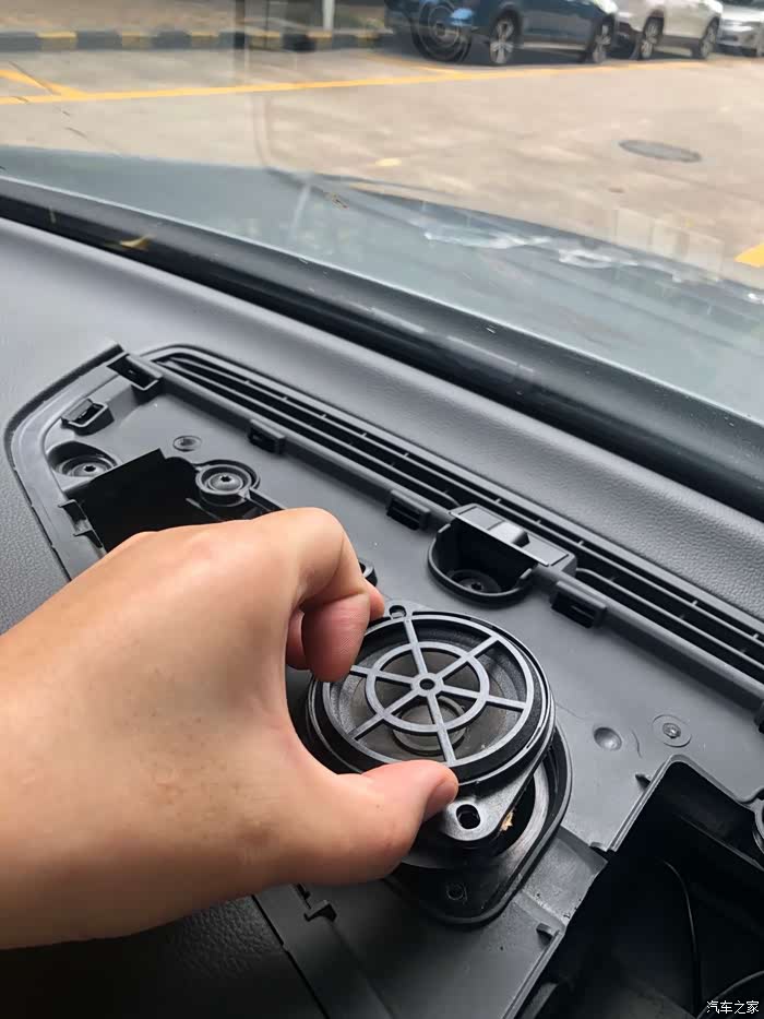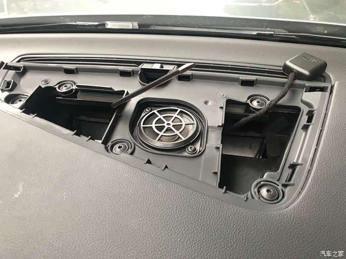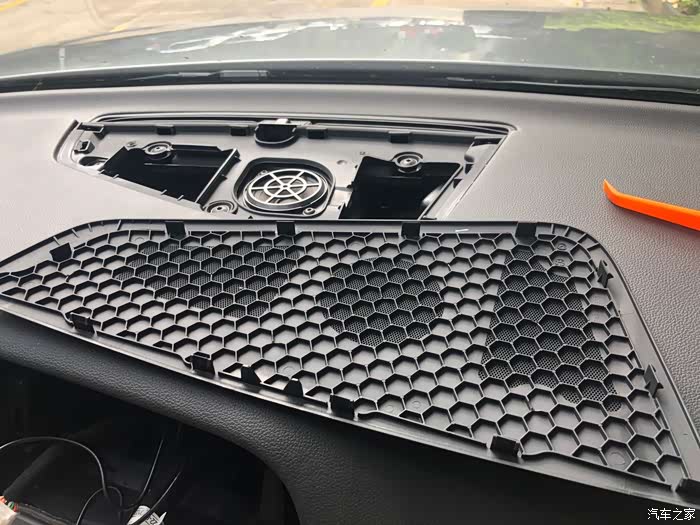 中置喇叭盖板是卡扣固定,难度不大,就是要对准卡扣点慢慢来。蛮力的话容易弄个坏卡扣。