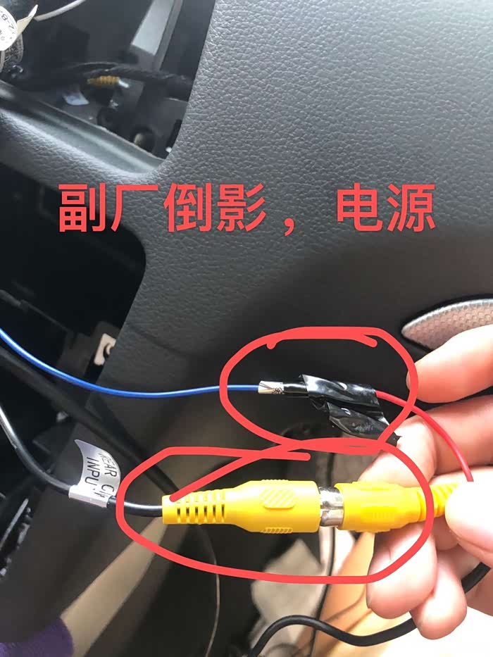 接倒车影像视频线和电源线,图借用车友Howareyouiamfine