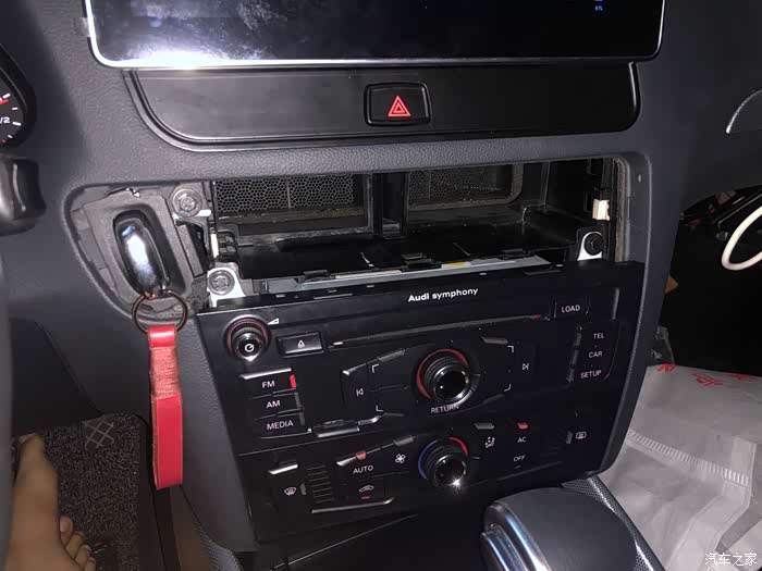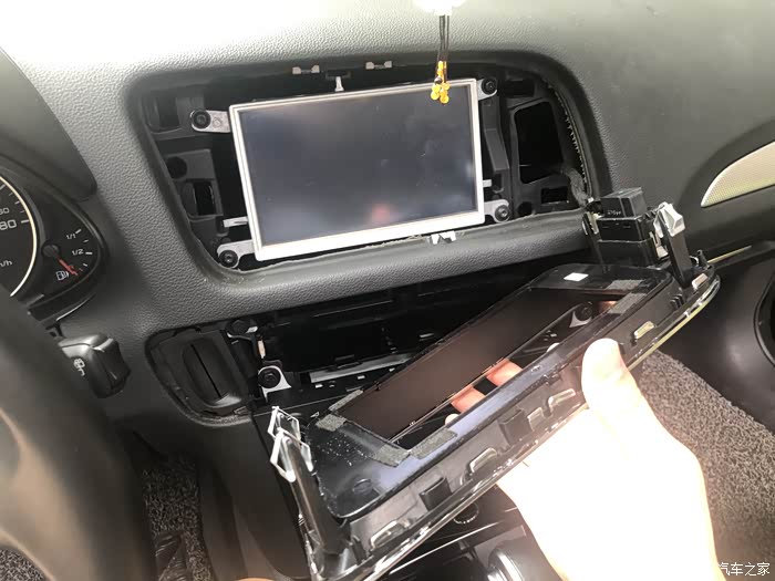 出风口面板是卡扣固定,放心拉出,高配车有个灯的电源线,要注意拔掉,我低配没有灯