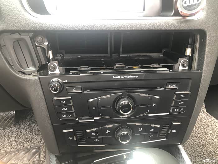 现在中控就剩下多媒体CD控制面板了。4个角4颗8mm五角螺丝,拆下。