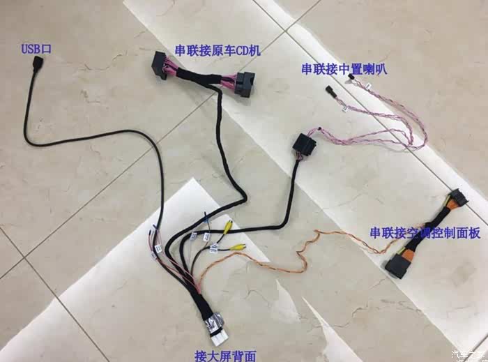 新车机的线束,根据类型对接上就可以。图借用车友Howareyouiamfine,车机大屏上还有个USB接口,所以一共2个USB接口。