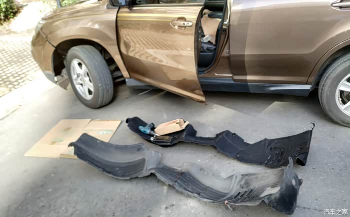 两个前轮内衬都有一个跟前杠连接的卡扣,记得拆掉