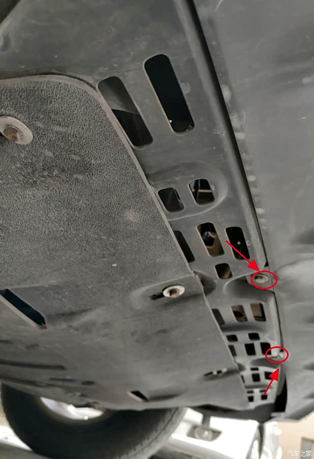 发动机下护板更换过,原厂护板可能样子不一样,不过螺丝孔位是一样的,原厂护板里面应该还有个螺丝