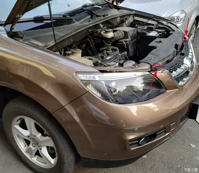 最后在前杠左右边缘的位置向外拉,这部分很容易弄坏前杠支架和带螺丝的方形卡扣,我只换了左侧支架,右侧支架没有买,好在只是中间的卡子被拉断了,影响不大。前杠拆下来以后开始拆前杠上面的东西