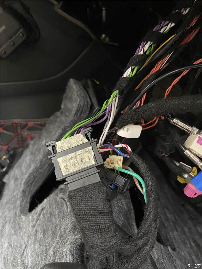 根据位置先接入前中置和后低音炮(原车有预留孔位)