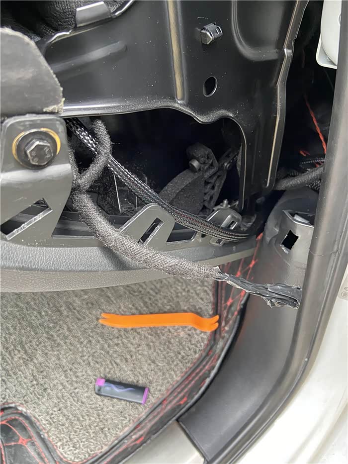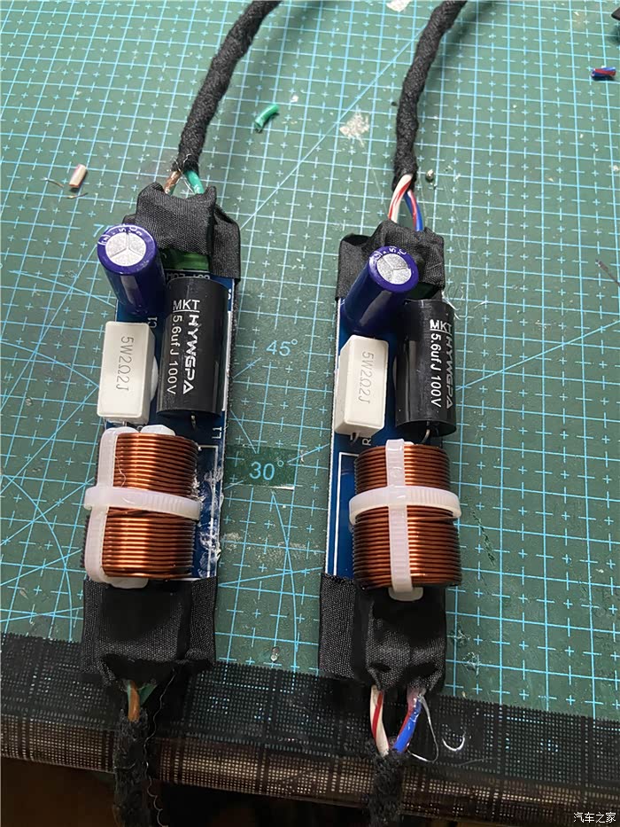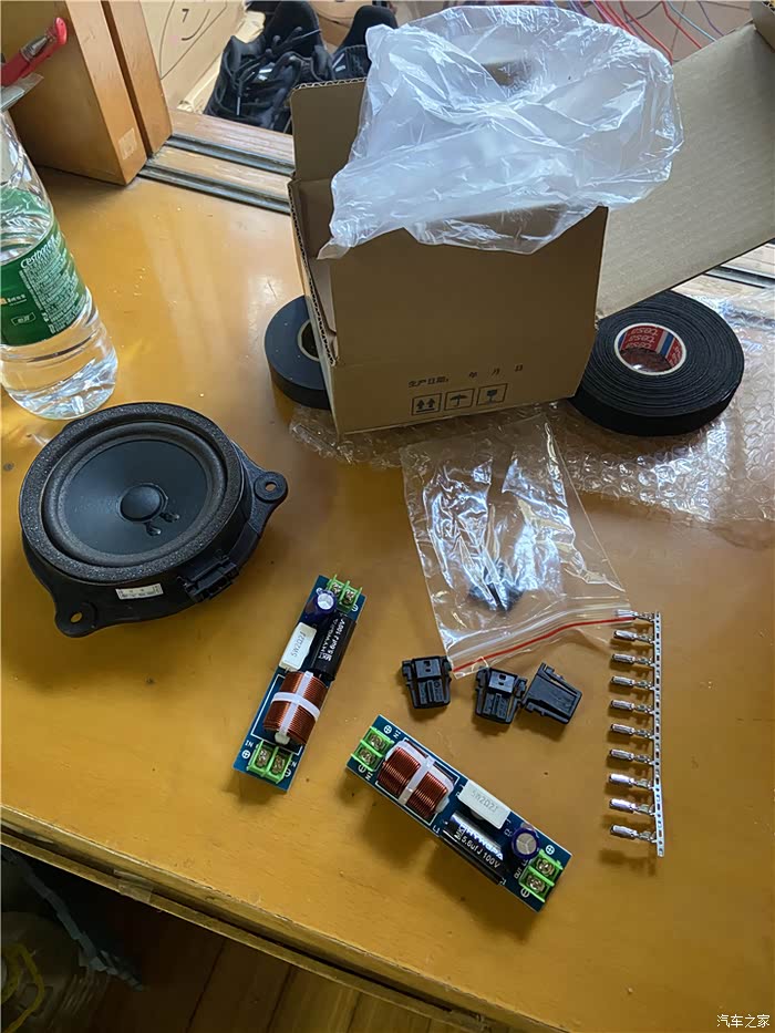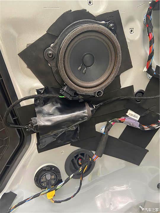 我没有功放,所以我采用的是前门中音的并线方式:从后门的低音喇叭并线+中音分频器来实现多2个中音喇叭