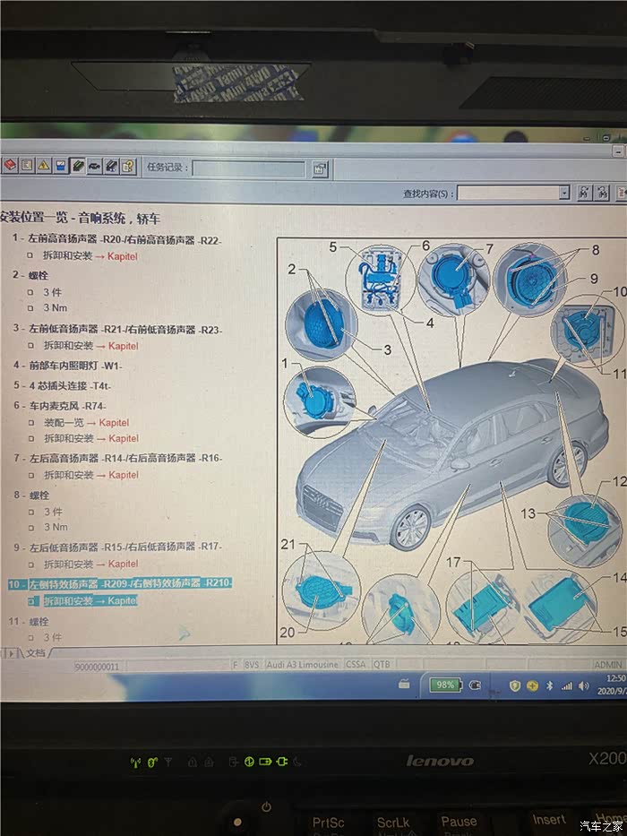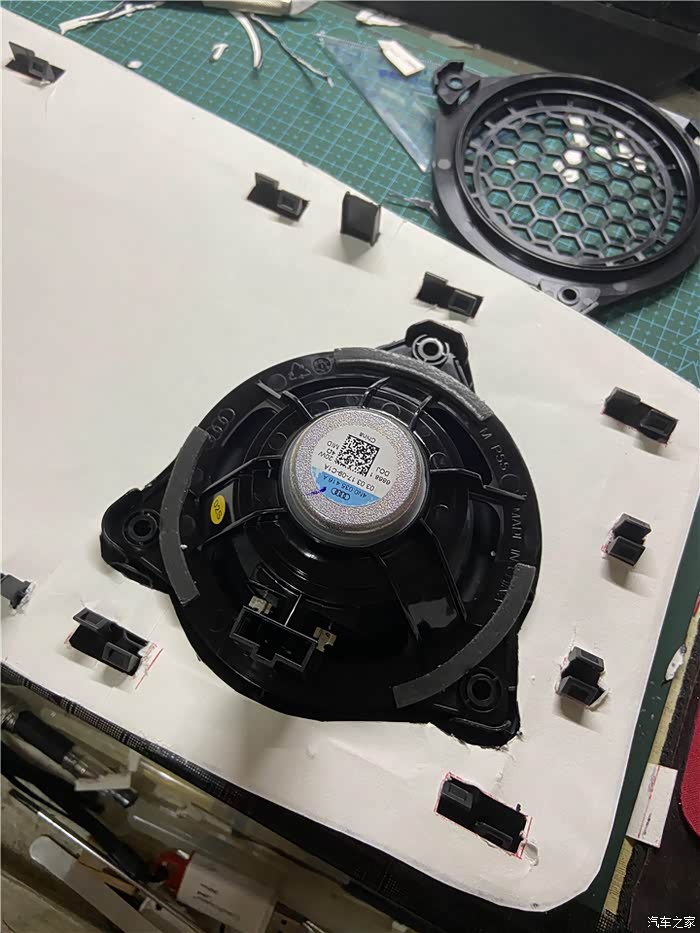 自己动手穷玩车内音响喇叭升级。都知道A3只有选装BO才有14个音响喇叭,本人穷改,也凑齐了14个音响喇叭:原车4高音,4低音,各种尝试增加了:1个前中置,2个前门中音,1个后台板低音炮,2个后台板位置中音共计14个音响喇叭。