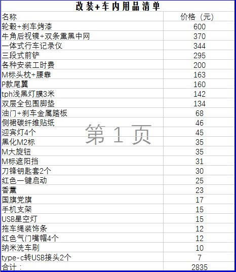 说是改装,其实就是外观上的一些小改动。我先附上我的改装清单,然后接下来一个一个具体给大家看。