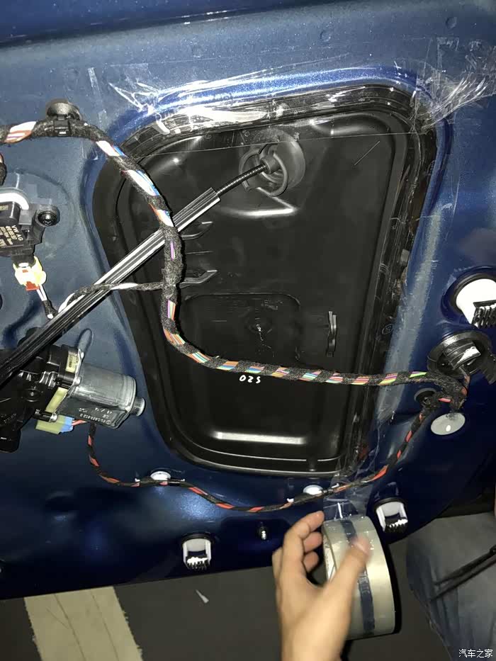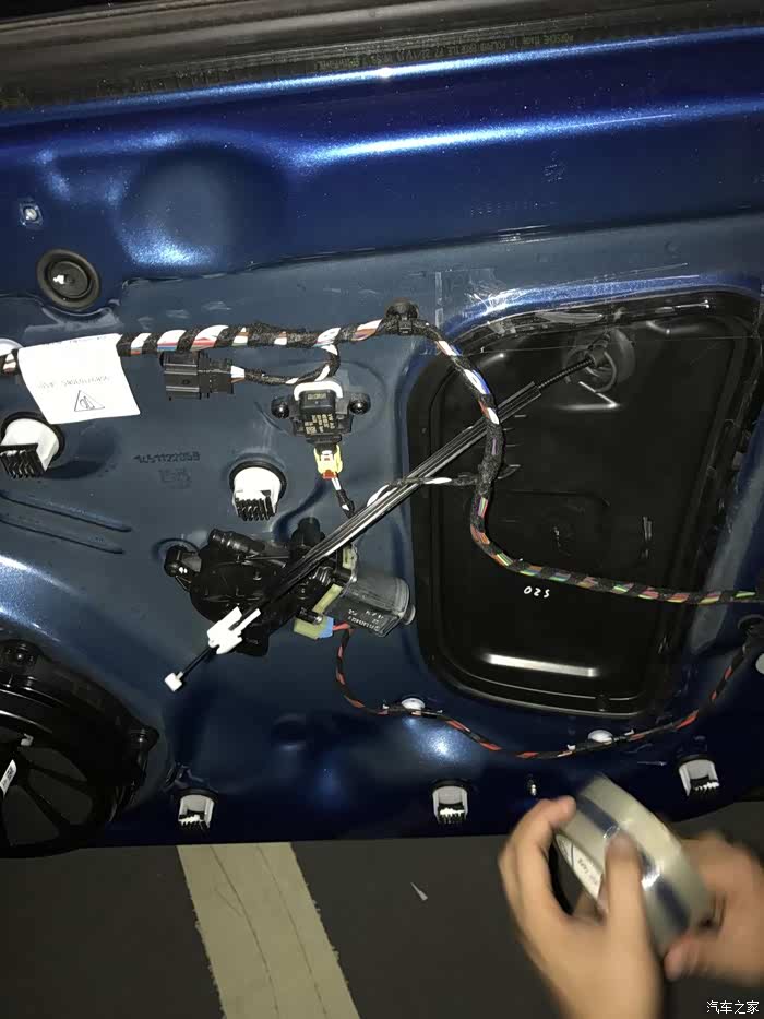 异响一:第一次发现异响是音响重低音的时候门板里的共振异响,拆开排查。