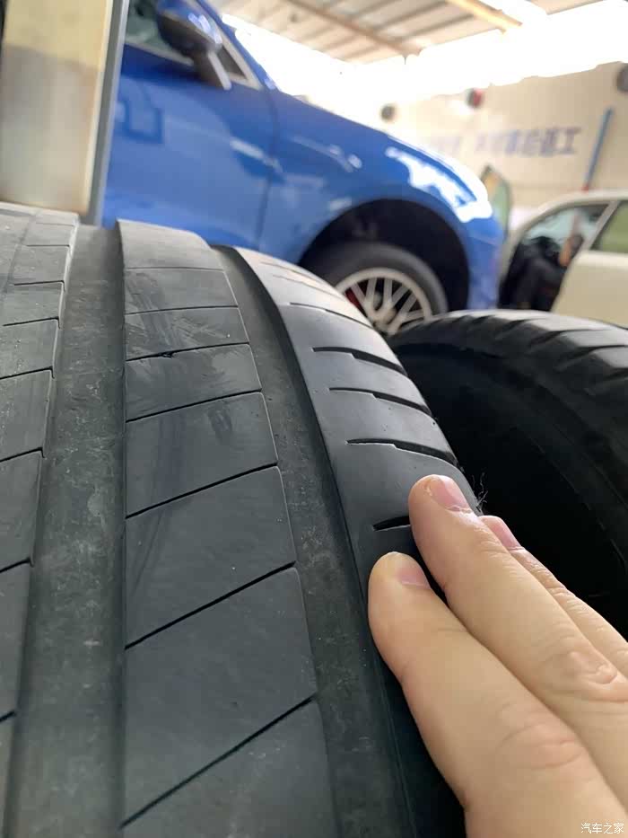 打电话咨询4S说可能轴承坏了,不过可能性不大,我就借车友的18寸轮毂试了一下车,异响排除。所以认真检查了一下轮毂和轮胎发现原来是轮胎变形导致。把轮胎一对换了困扰了几个月的异响解决。