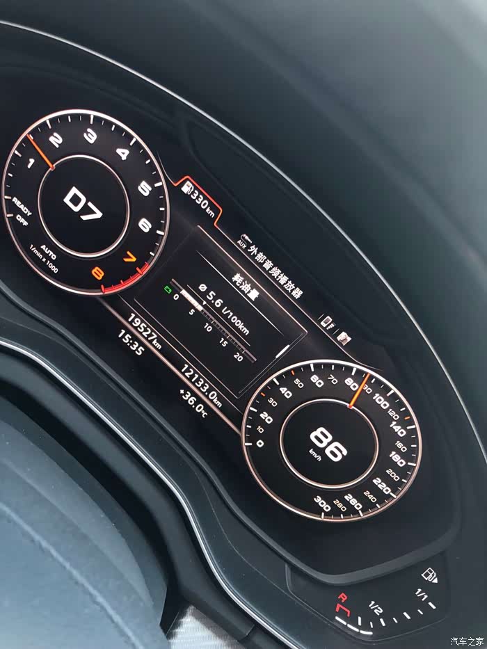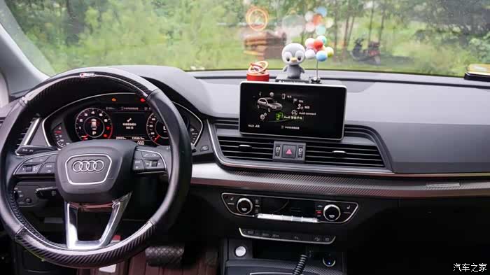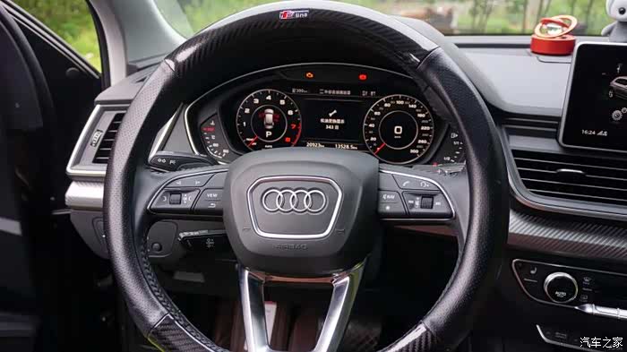 内饰一眼黑 奥迪。。。。。。。方向盘套一直没去包 嫌弃原来的握起来有点小 所以淘宝几十块随便搞了个套 现在想换运动方向盘