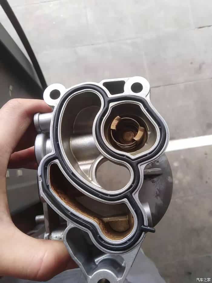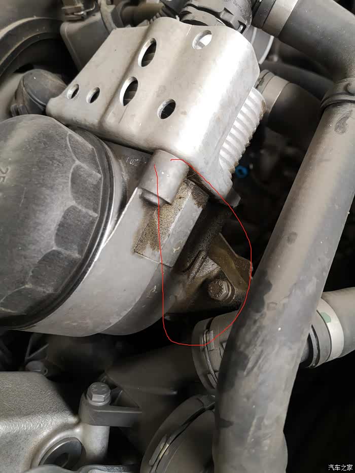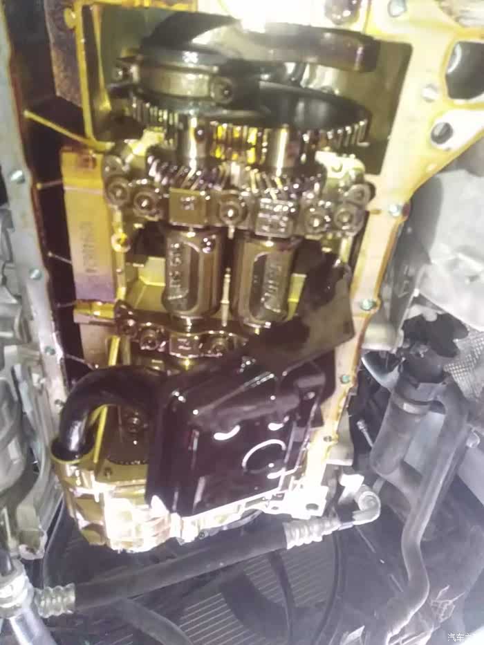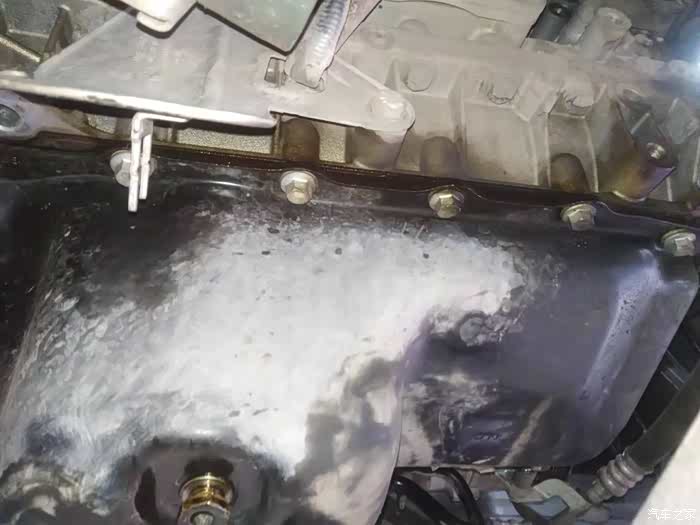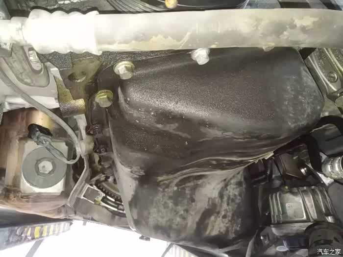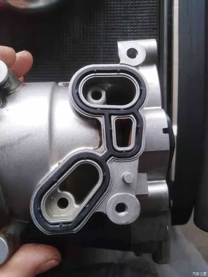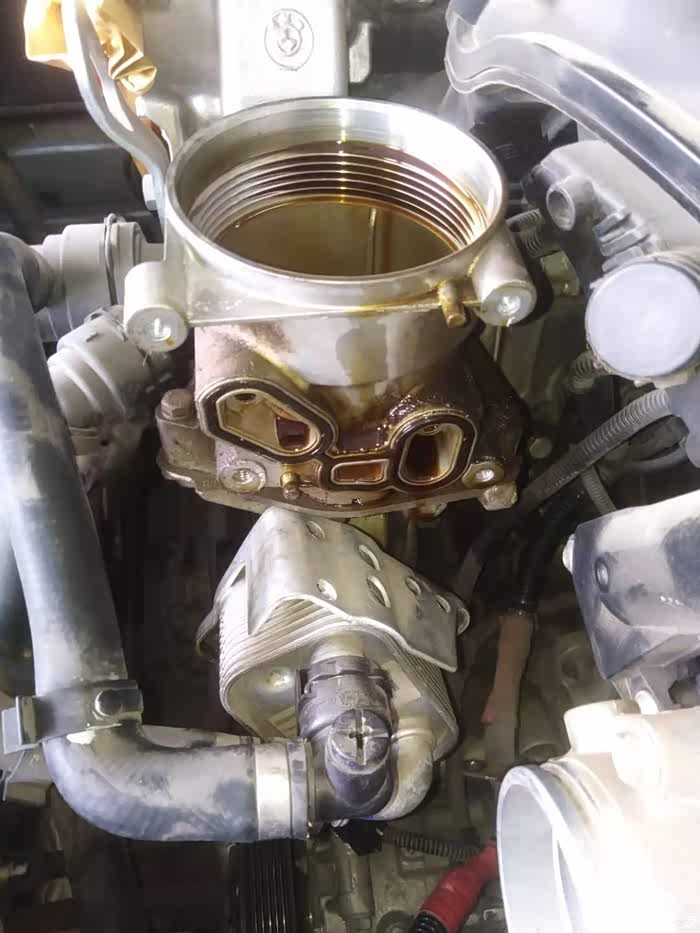 最先维修的是机油坐和机油散热器漏油,更换密封垫即可。同时清洁干净。