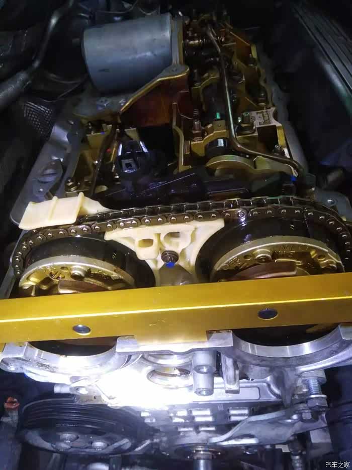 在检查的过程中发现正时机构的连扳出现断裂,万幸不是主要部分断裂。