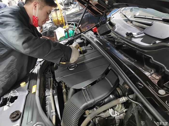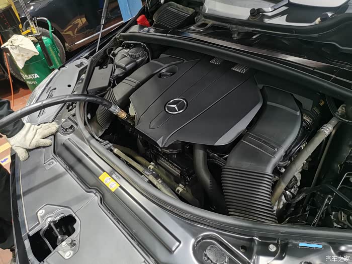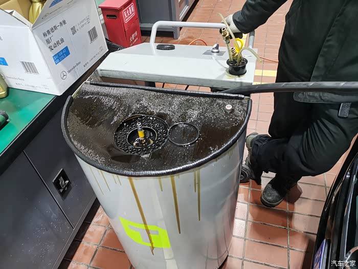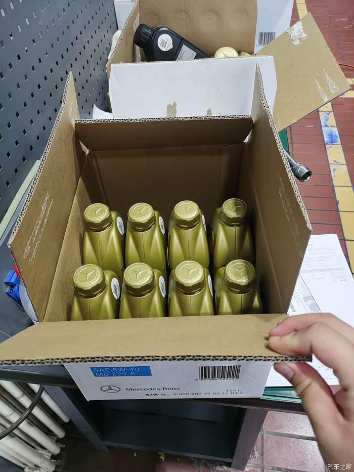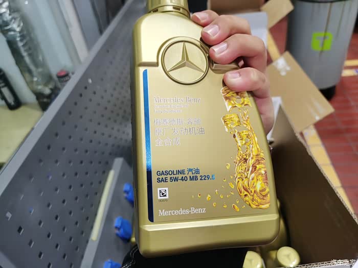 4s店给搭配的机油,5w40符合mb229.5认证,非常对路。用了不到两分钟,技工师傅就把抽油管给拔下来了,并拿来了一箱8桶1L装的奔驰专用机油,准备进行加注。