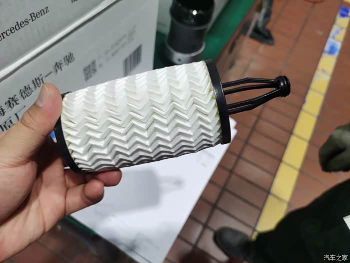 机油滤芯也需要随机油一起更换,奔驰的机油滤芯形状比较特殊,4s店推荐的更换里程是1w公里,所以长效性应该不错。