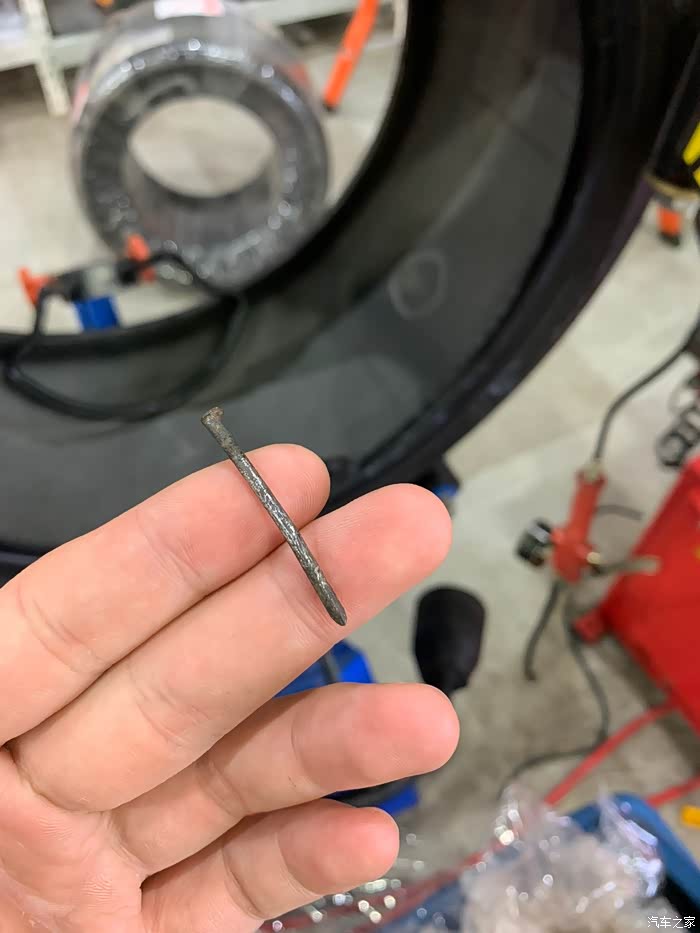 2、提车才开500km,就喜提钉子一枚,还好是防爆胎,车机提示胎压不足,立马开到修车店