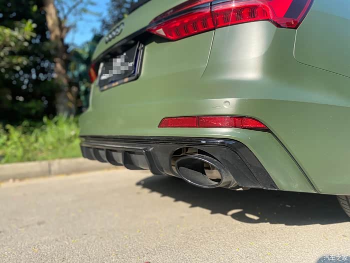 原车隐藏式的排气 应该不用我吐槽了,大部分A6车主都接受不了的一点。难在旅行版的S6尾唇没有开发,就只能找找其他样式尾唇尾喉换上了。效果也没那么差,亮黑尾唇 亮黑尾喉,和车身颜色搭配,浑然一体。全车也是做了黑化处理。