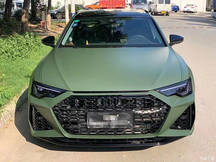 分享升级清单:改色贴膜:磨砂军绿 , RS6前包围 , RS6 尾唇尾喉亮黑款,全车镀铬亮条黑化处理。
